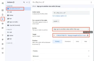ちなみに、マップのビューのデータをクリックすると一旦マップは表示されますが、ポイントをクリックしても中身が表示されないので、展開をいちいちクリックが必要でした。そこでmapに対してアクションを作成し、上記同様にBehaviorのRow Selectに対してそのアクションを指定。go to another view within this appのアクションにて、以下の数式を使っています。