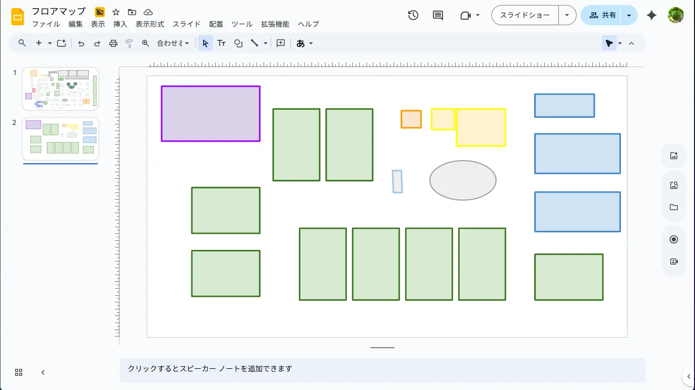 XYマップでは、マップ表示の土台用に独自の画像データが必要になります。フロアマップや区画エリアのような画像データは今回、Googleスライドを使って作成しpng画像として生成したものを利用しています。