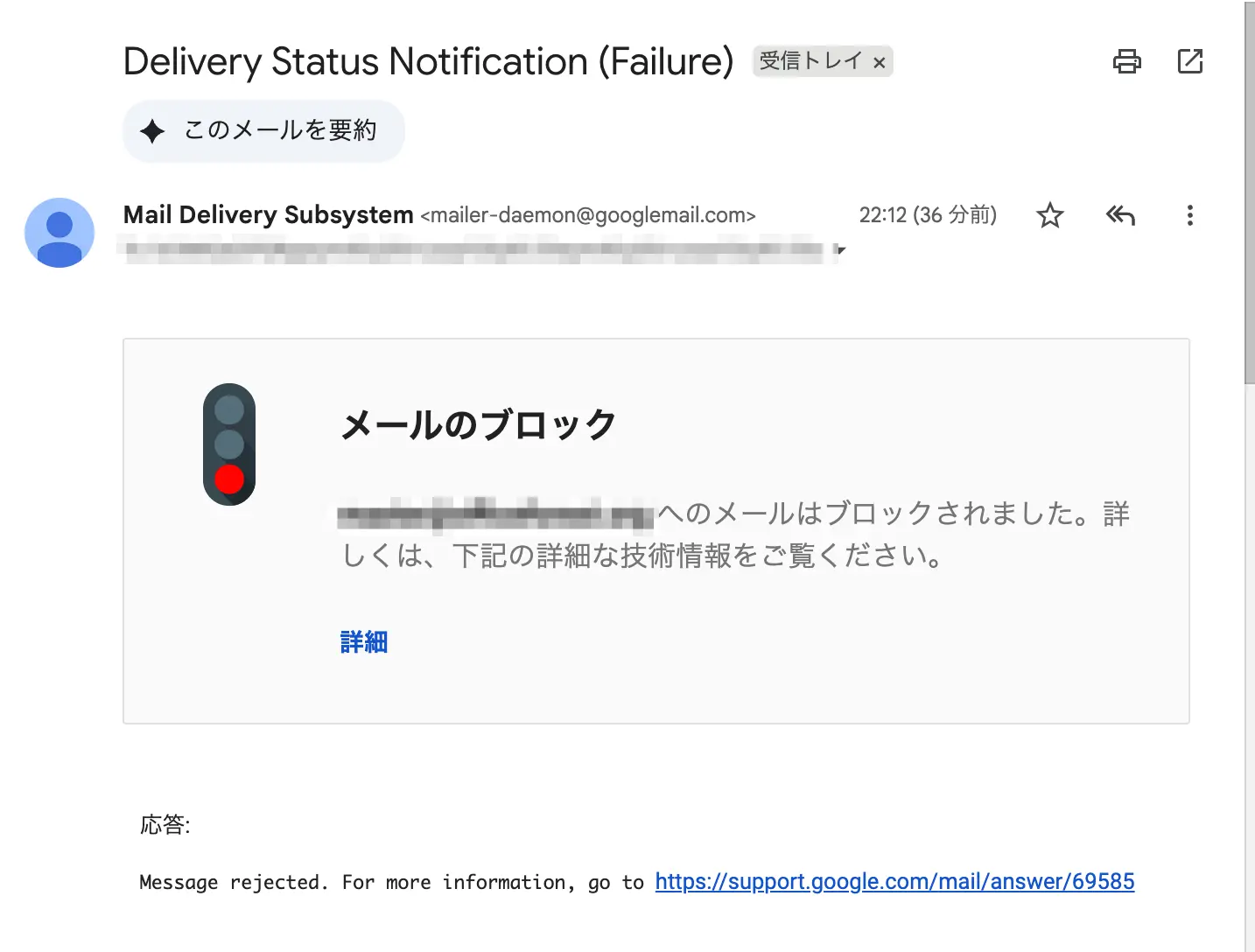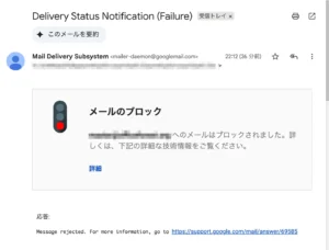 今回の手法でいくつか過去に使っていたコードのままにしておいた箇所が原因なのか?メールが送信されずにブロックされるという現象が発生するようになりました。