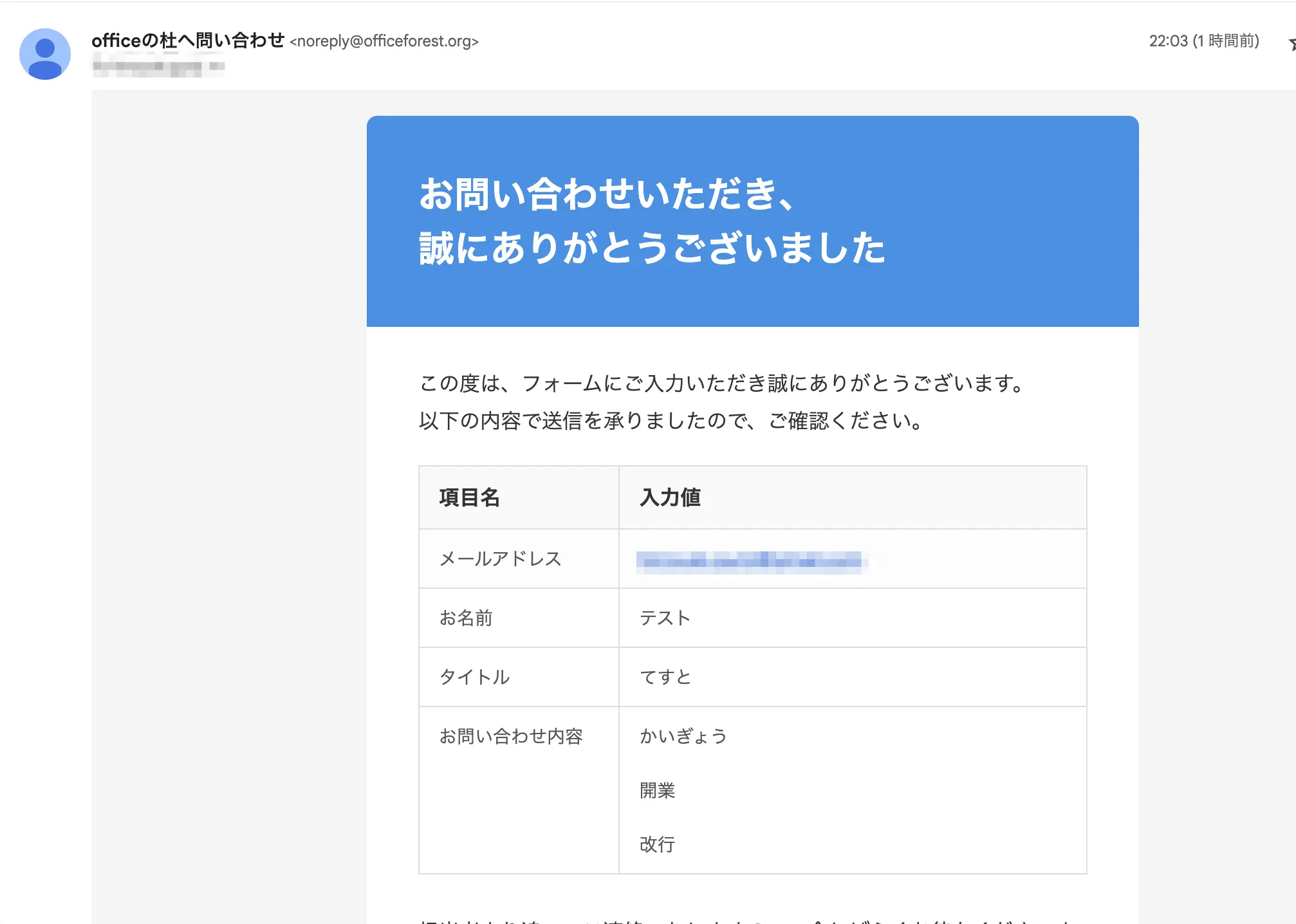 この度は、フォームにご入力いただき誠にありがとうございます。<br>