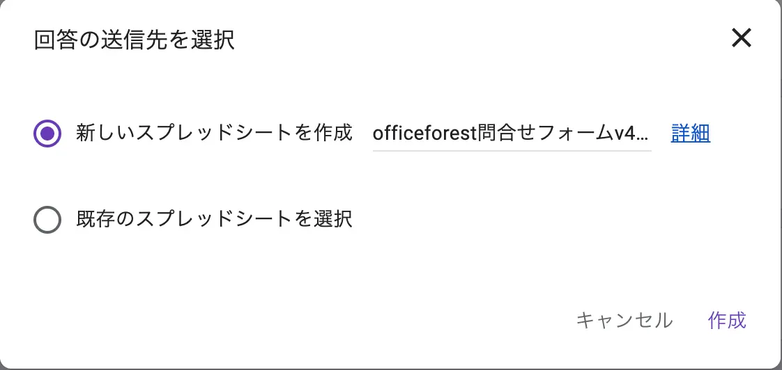 故にフォームに対して以下の手順でスプレッドシートへのリンクをしておきます。