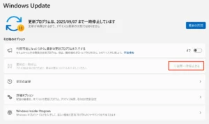 - 更新の一時停止にある「1週間一時停止する」をクリックする