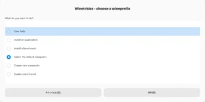 - WineTricksでWine環境に必要なDLLやアプリケーションをダウンロード&インストール